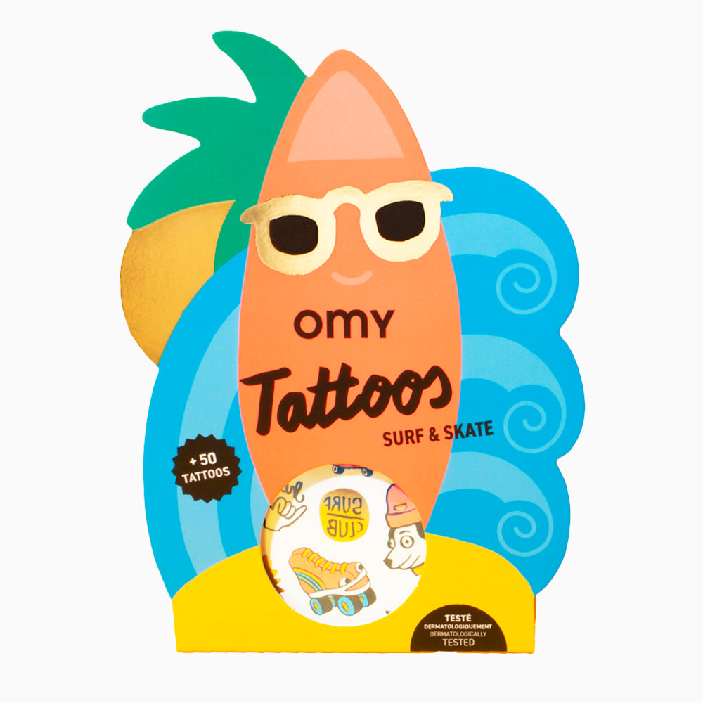 These playful surf & skate designs make some totally rad temporary skin tattoos! You get 50 brilliantly colored tattoos in neon, golden, and other colorful shades that are sure to draw comments and show off your style!